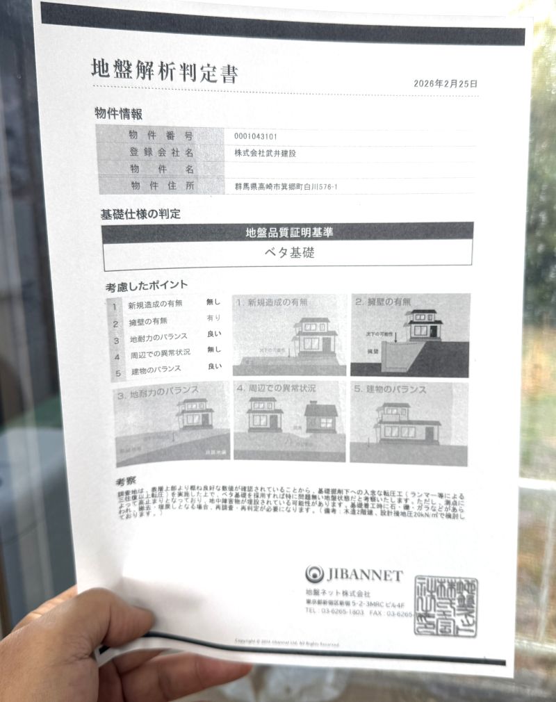 調査の結果、良好な地盤で改良工事の必要はありませんでした。
