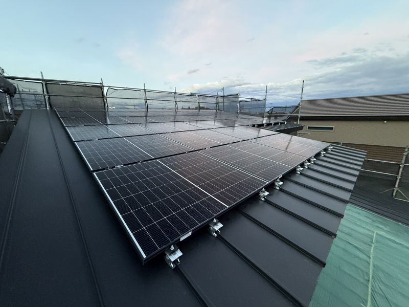 屋根の上には太陽光パネルが設置されました!!