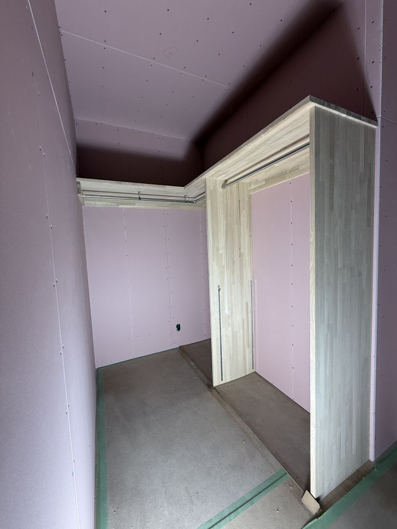 フアミリークローゼットのパイプハンガーも造作工事で制作されます。(^_-)-☆