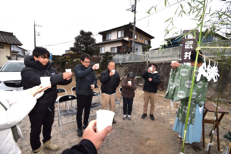 無事に儀式が終わり工事の無事を願い乾杯です🍻