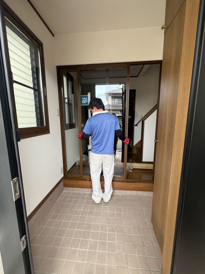 次に玄関框の上に窓を設置します。 商品:YKKAP(内窓)