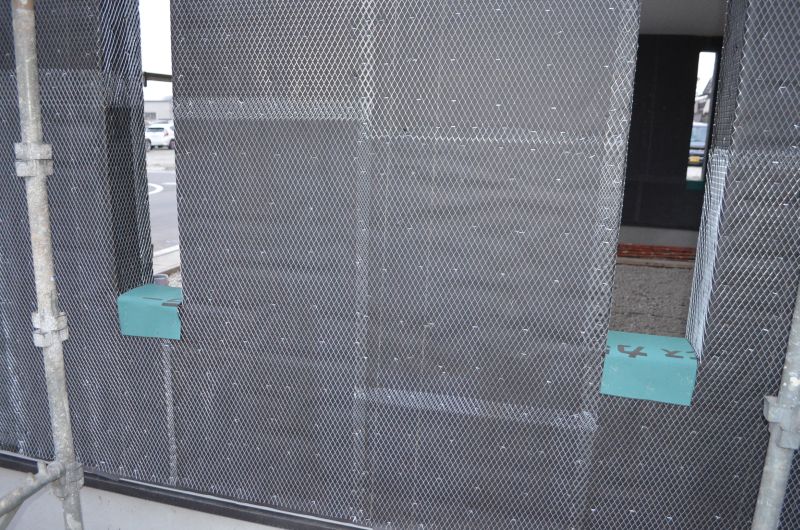 外壁全面に金網メッシュを張りました。