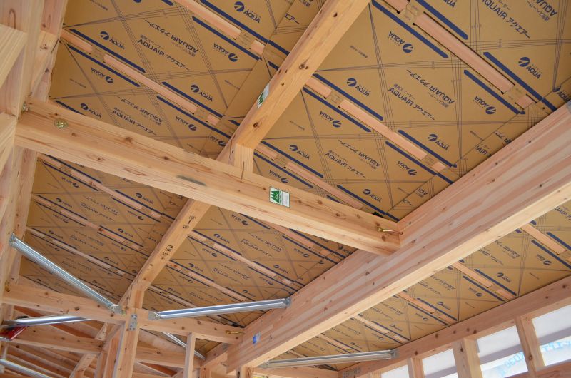 屋根の下には吹き付け発砲断熱の下地工事が進められています。