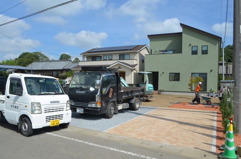 6月に竣工したT様で今日から外構2期工事の着手です。