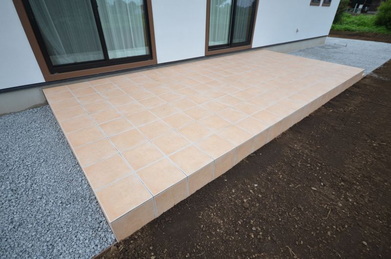 アプローチはレンガと枕木風のコンクリートが採用されました。