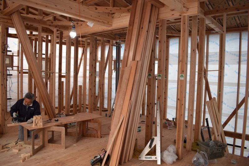 屋根裏の発砲吹き付断熱の下地となるスペンサーを設置しています。