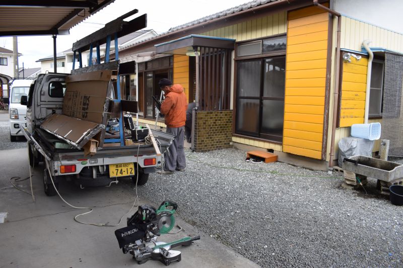 屋内では内装クロスの下地パテ塗り工事が進められています。