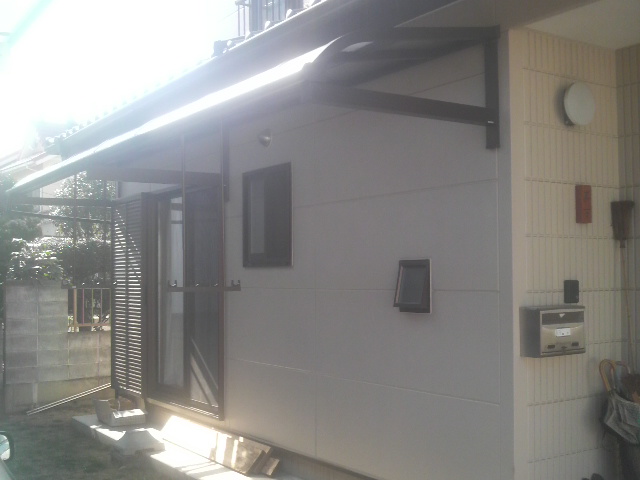 午後1時、工事が完了しました。持ち出し屋根は柱がないのでスッキリしています。