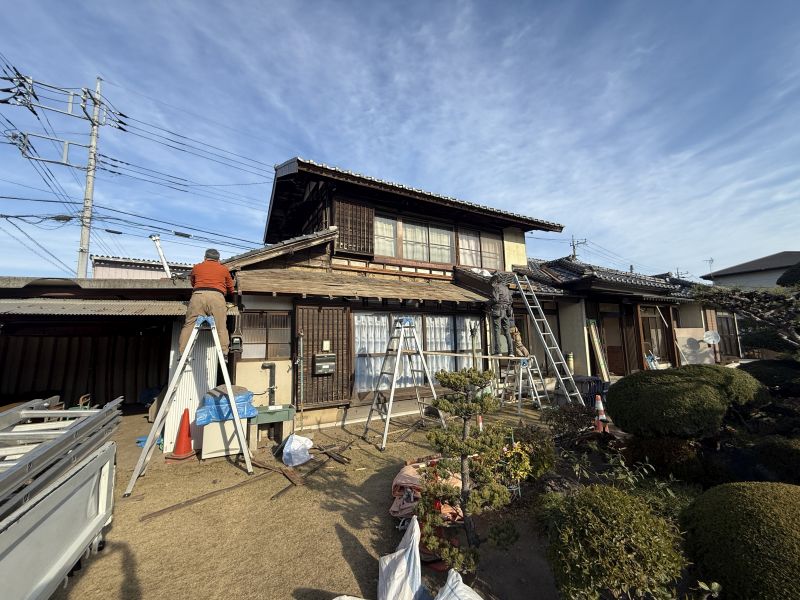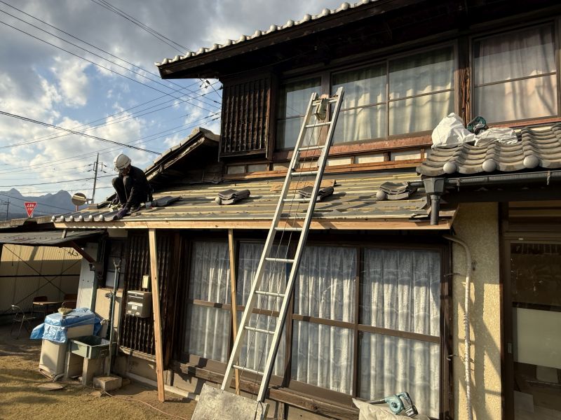 下屋部分の屋根瓦を撤去しました。