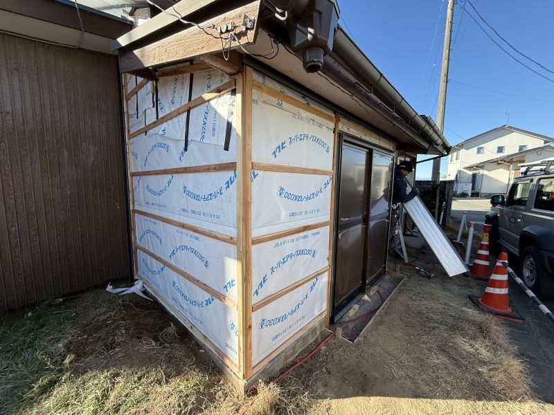 防湿シートを貼り外壁材を取付てゆきます。