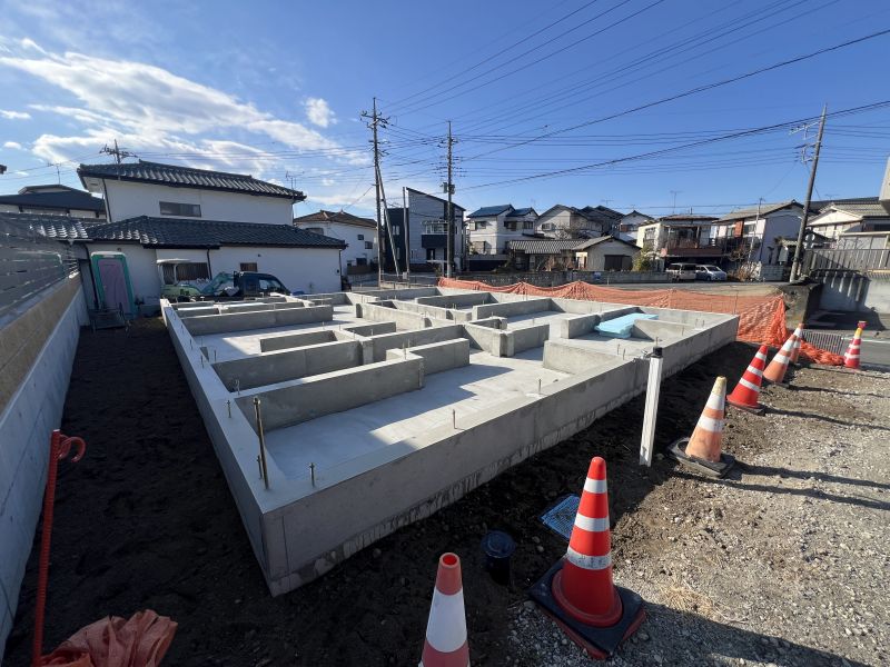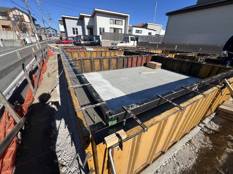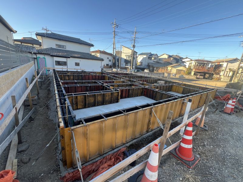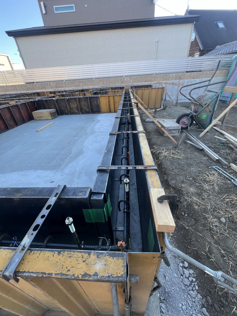 立ち上がりの布基礎部分には補強鉄筋が設置されています。