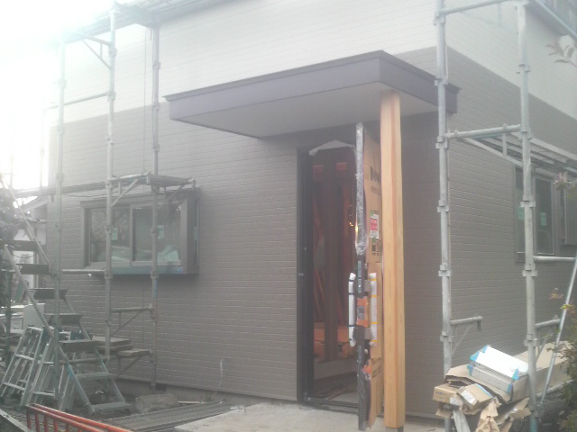 すでに玄関廻りは外壁材が綺麗に張られています。