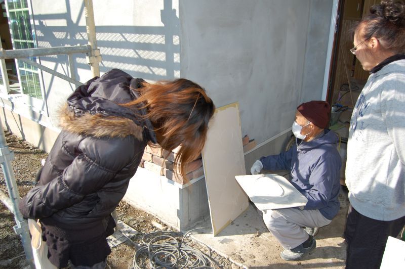 塗り壁デザイン(塗り方)をお施主様に確認してもらいました。