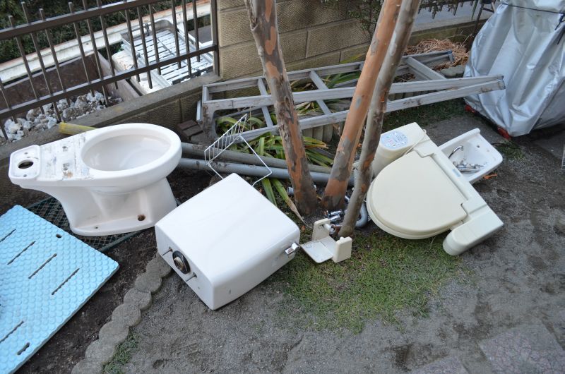 手壊しでトイレと脱衣所の部分を解体してゆきます。