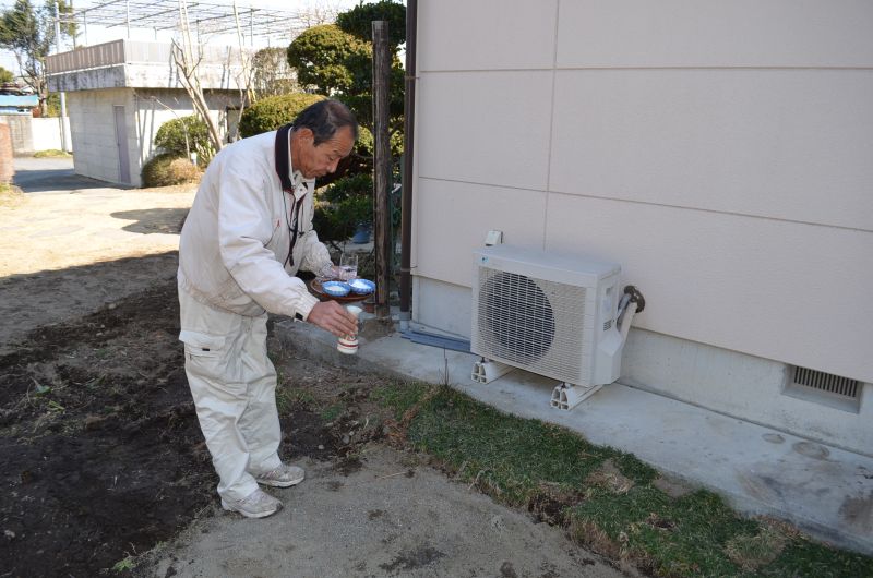 まずは工事の無事を祈り、お米、お酒、お水でお清めです。