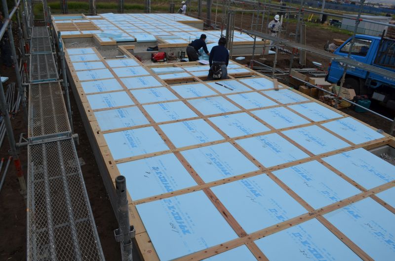 足場工事が進められています。さぁいよいよ明日は建て方です!!