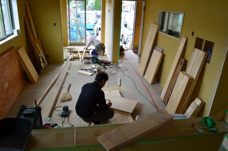 電気屋さんによるスイッチの壁穴明け工事の模様です。
