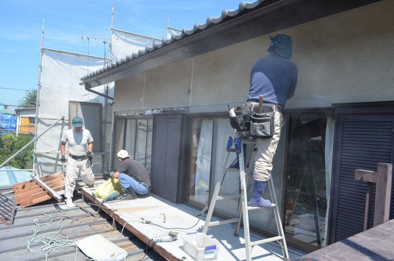 リフォーム2日目。炎天下の中、今日も工事が進められています。