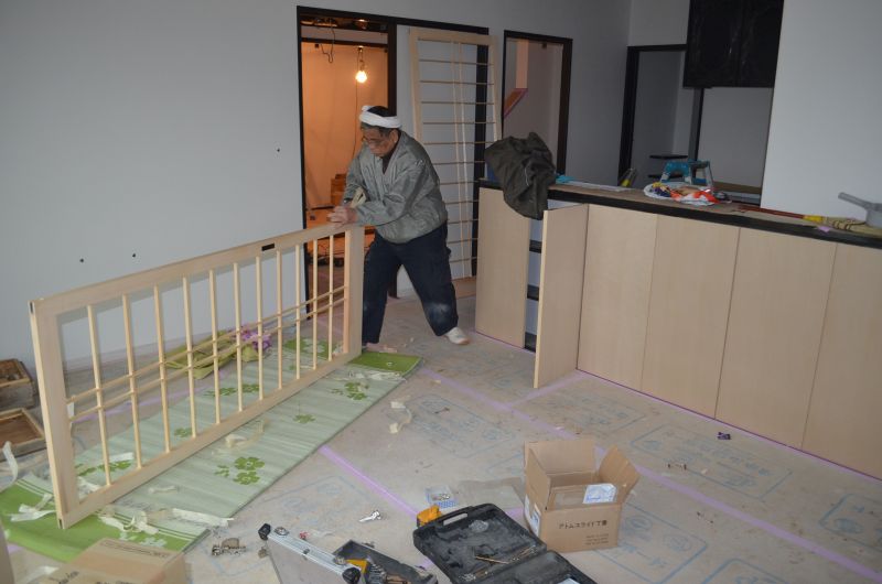 オーダーの家具にこの後、引出や扉を取り付けます。