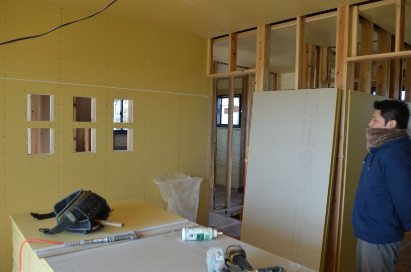 屋内では工事の進み具合の確認と棚板の位置などを確認しました。